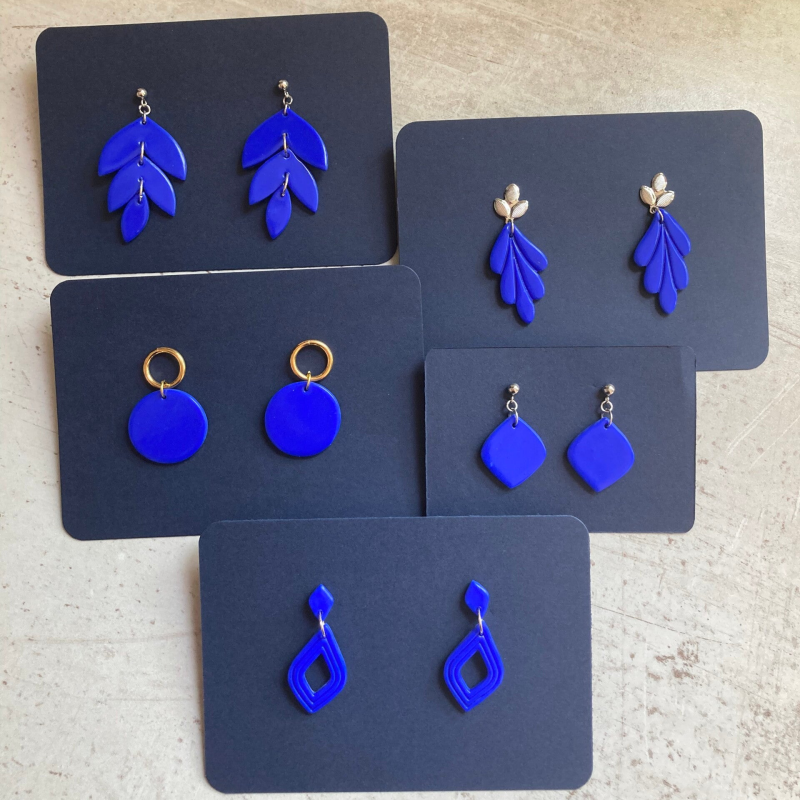 De oorbellen uit de Basic Collection zijn nu te koop! Deze oorbellen zijn effen en erg helder van kleur. Beschikbaar in verschillende vormen in het zwart, beige, blauw, groen, geel, rood en roze.