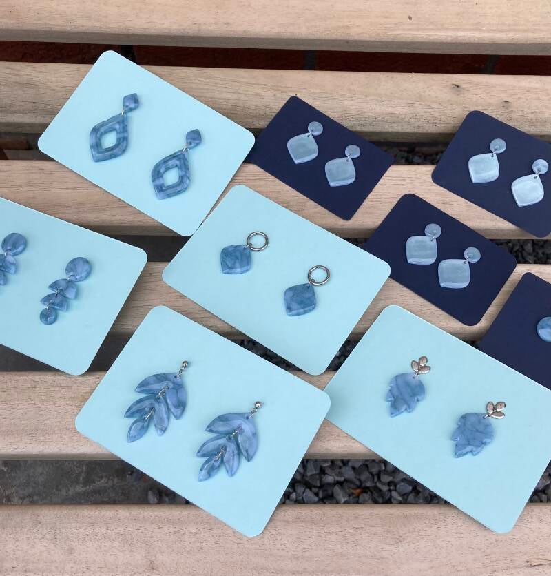 De oorbellen uit de Blue Marble Collection zijn nu te koop! Allemaal afgemaakt met een laagje epoxy voor een extra luxe uitstraling. Dit laat de kleur en glitter helemaal tot zijn recht komen!